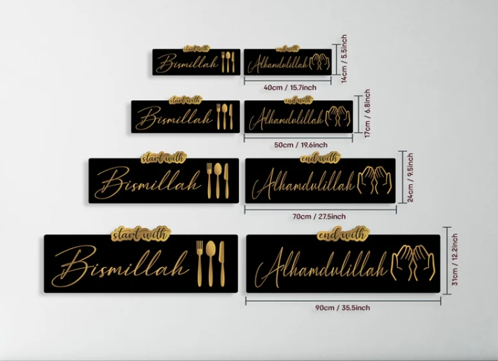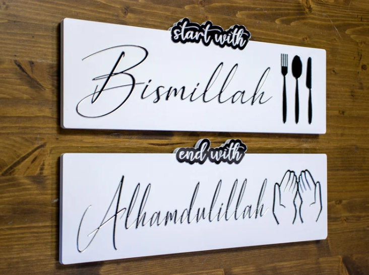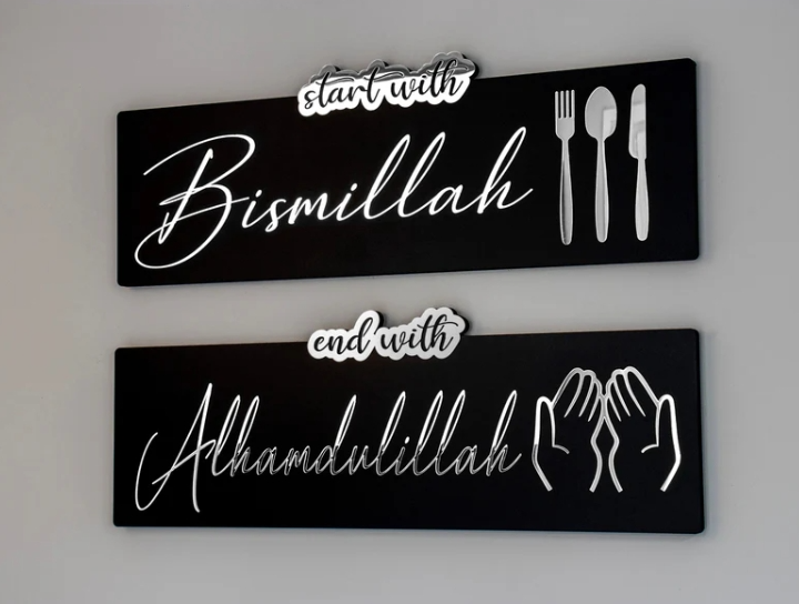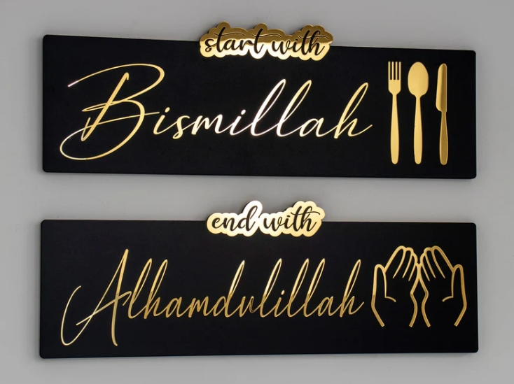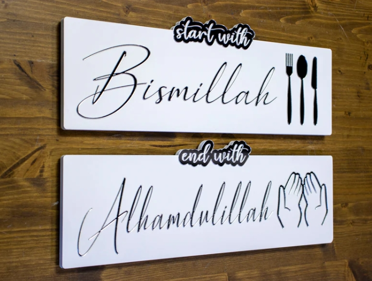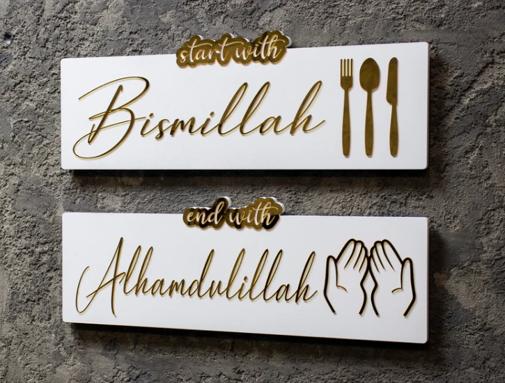 Start with Bismillah - End with Alhamdulillah, Wooden Acrylic Islamic Wall Art