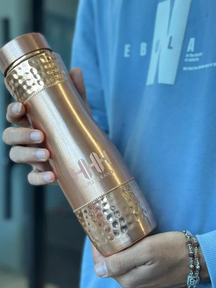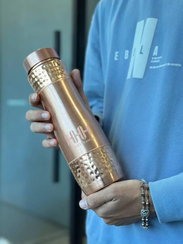 100 % Pure Personalise Copper Drinking Water Bottle Ayurveda Yoga Health Benefit