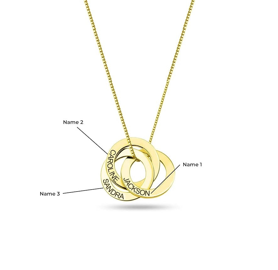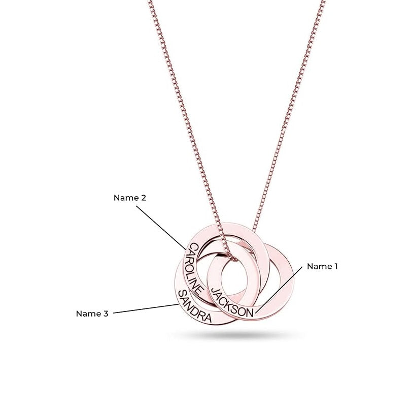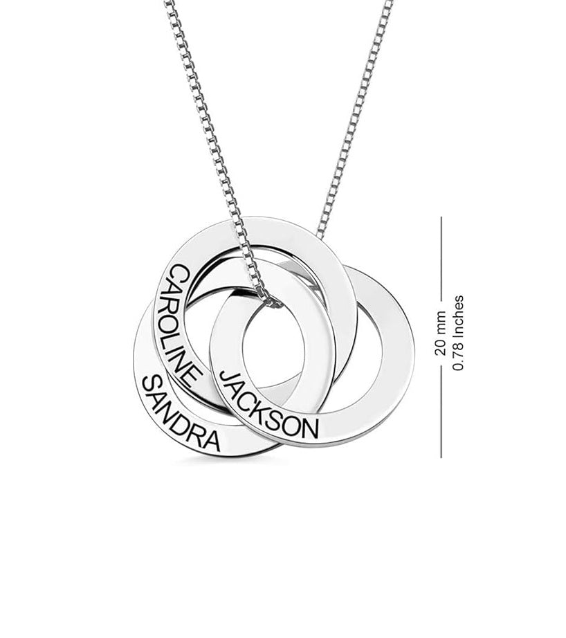 Name Necklace with 925 Sterling Silver Personalized 3 Russian Rings Family Jewlery