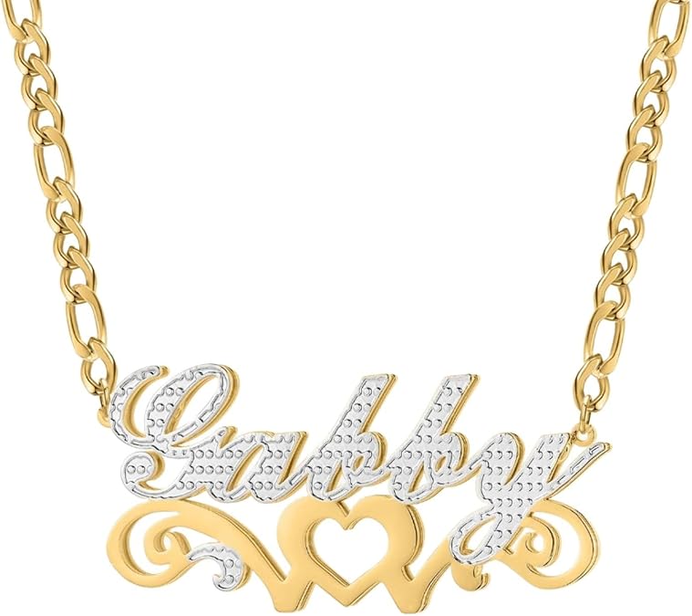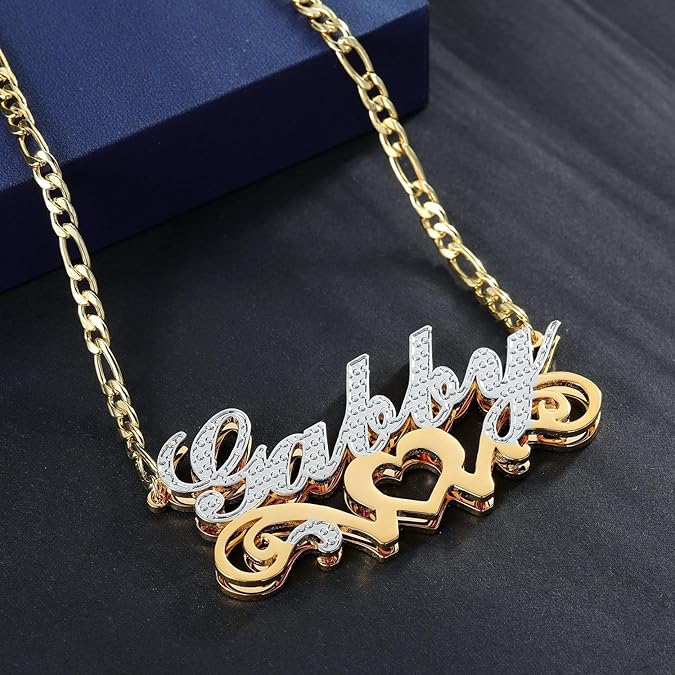 Two Tone Nameplate Necklace, Double Plated Name Necklace