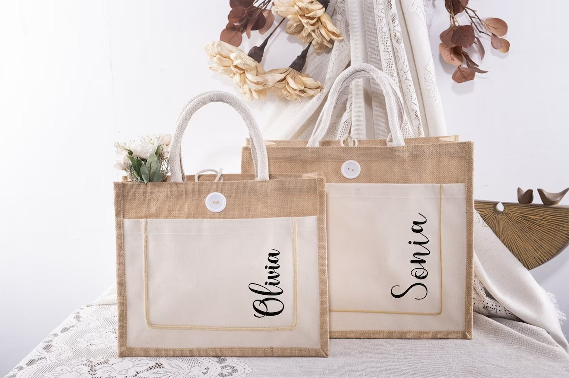 - Collections: Bridesmaid Bags , Jute Bags , Personalized Bags