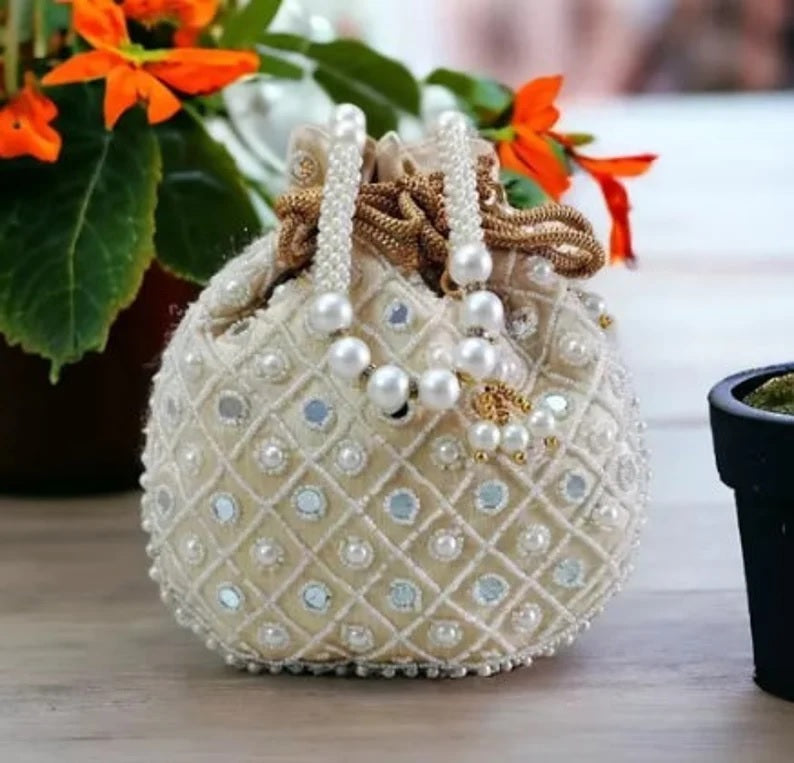 DESIGN: Embellished with Indian hand work, the soft fabric interior of the evening bag has enough room to keep your credit card, cash, and other small essentials like mobile phones, lipstick, highlighter, keys.