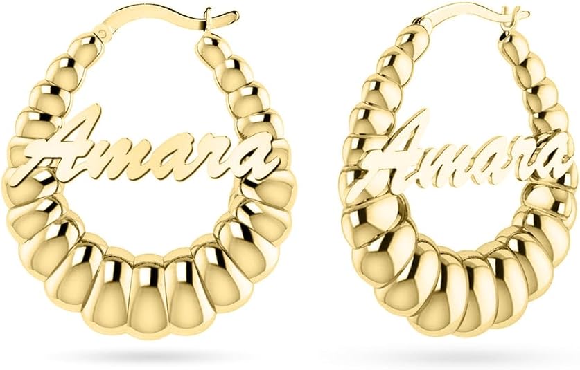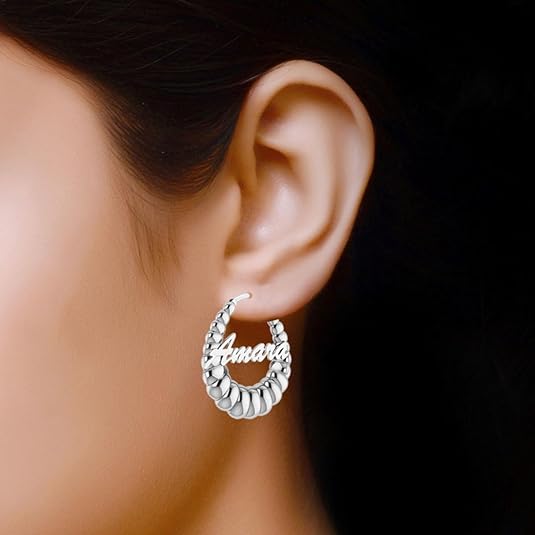Personalized Customized Name Shrimp Hoop Earrings gold Plated