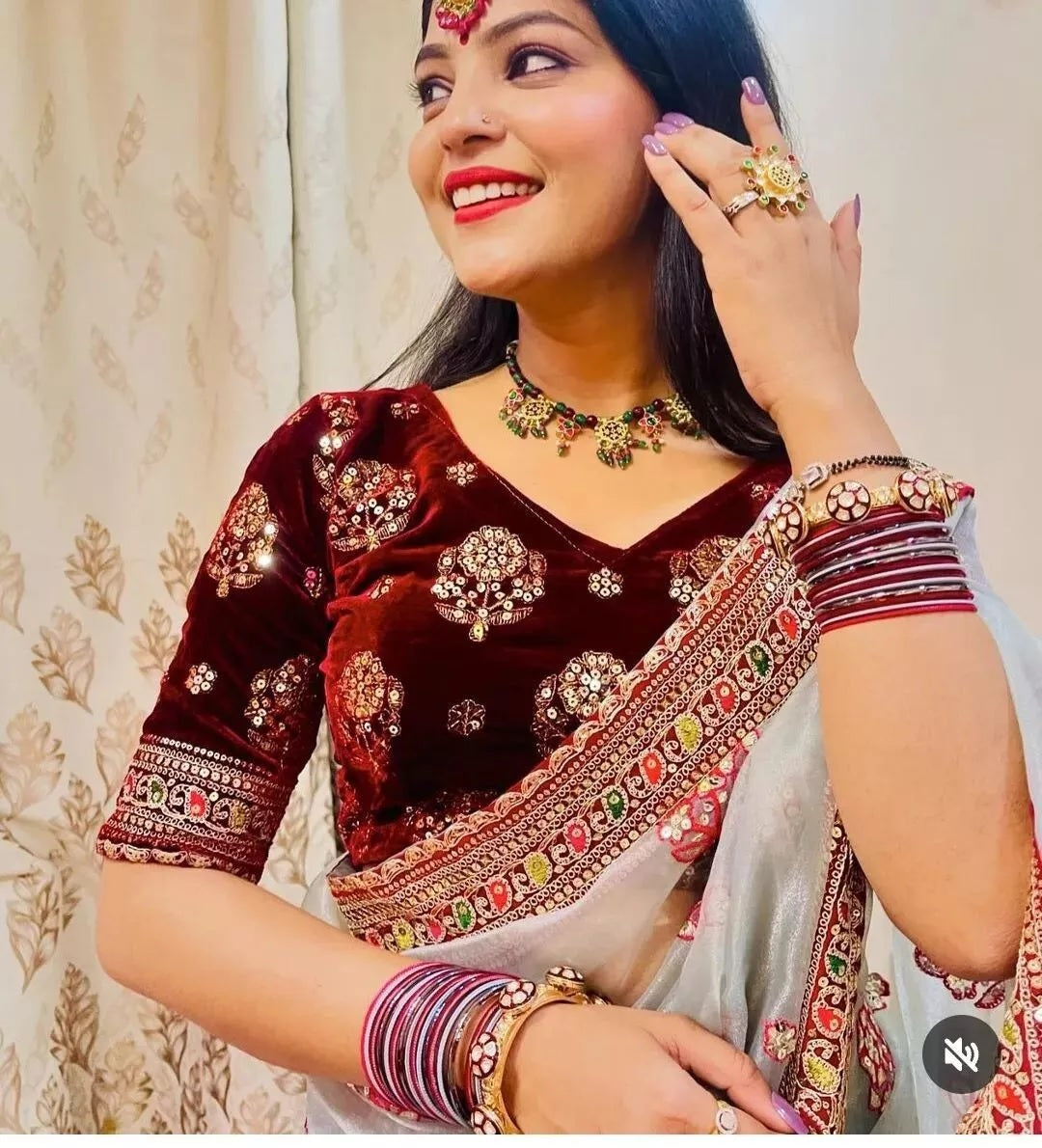 Wedding Bollywood Soft Light Organza Saree,Festival PartyWear Sari & Blouse