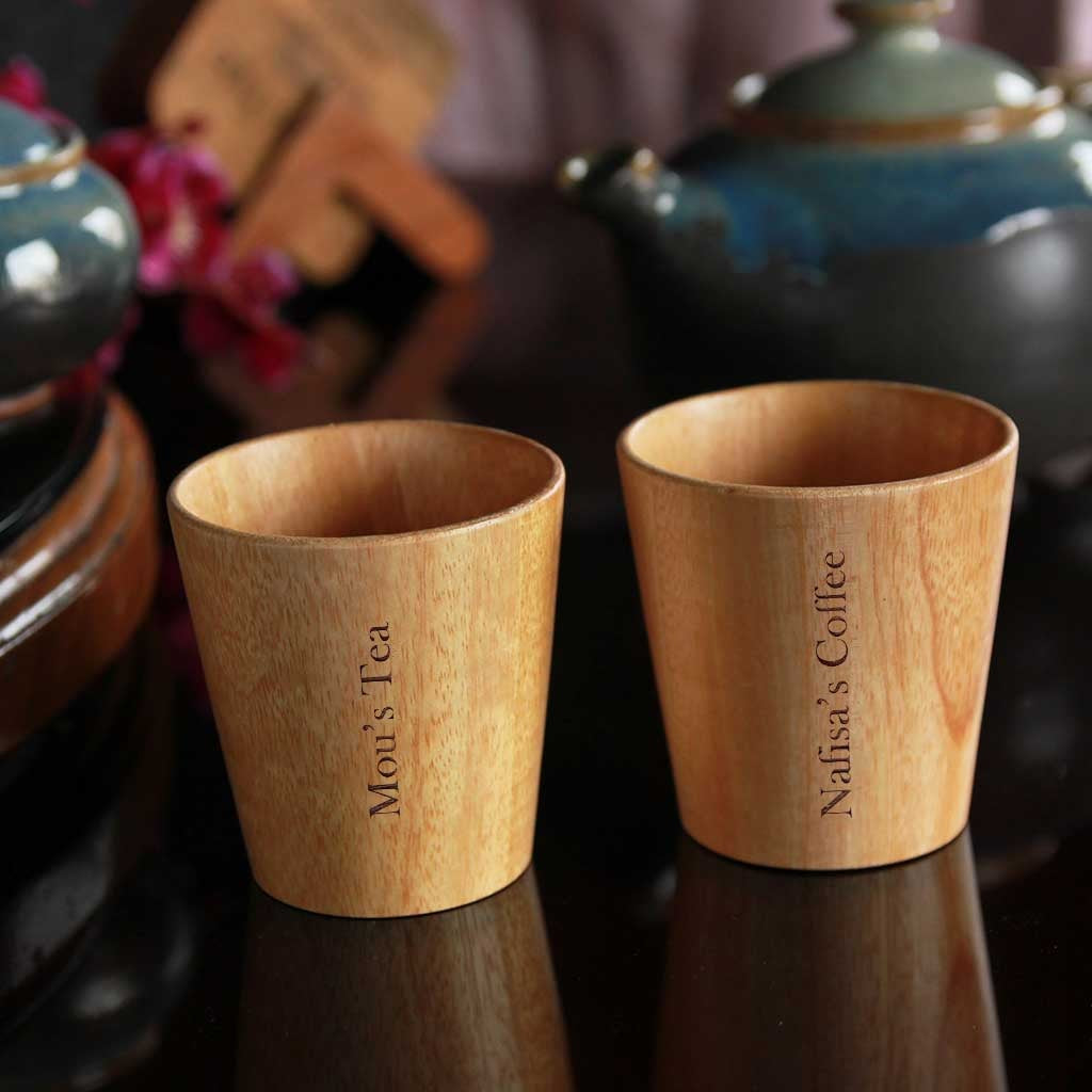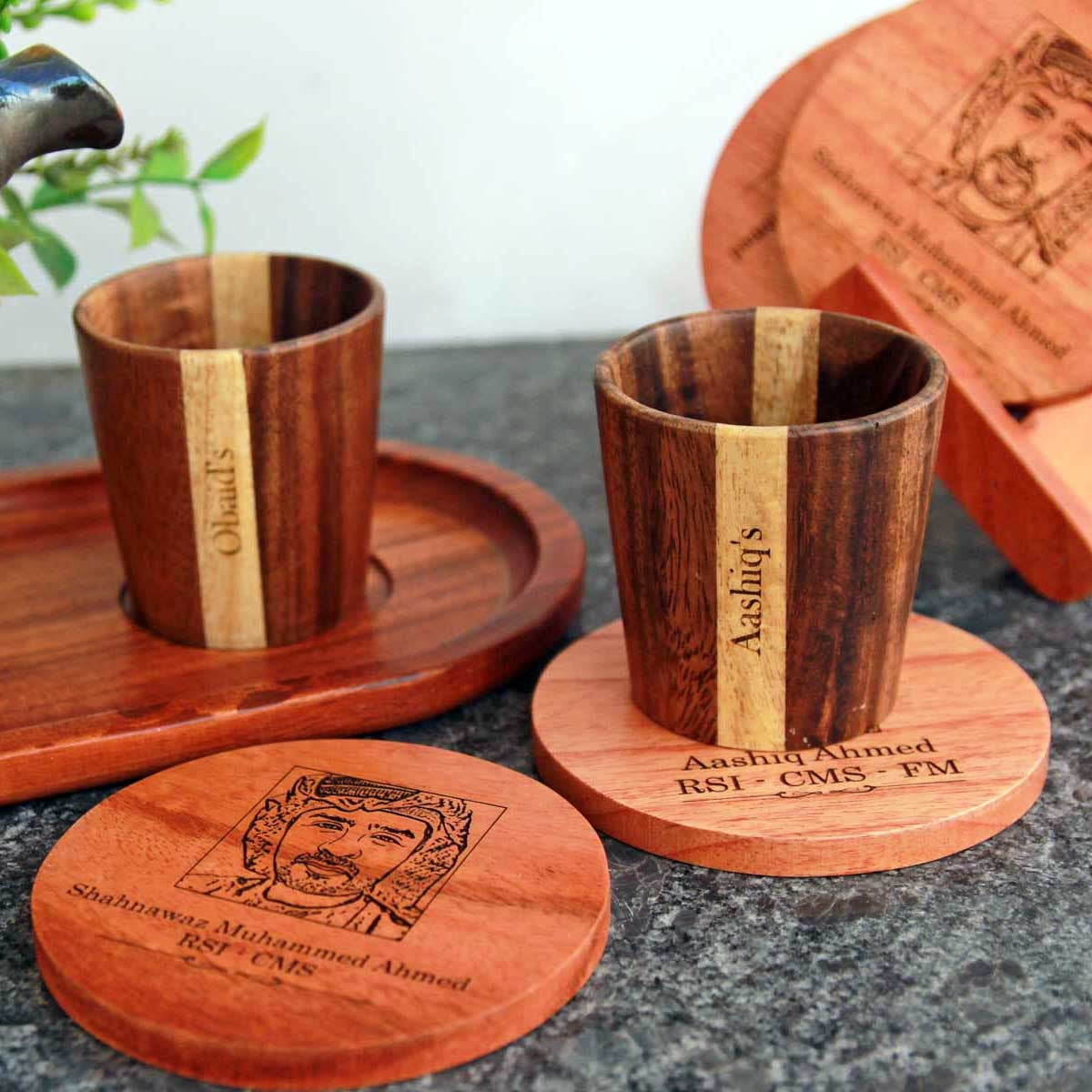 Personalized Birthday Gift Set For Tea Lover | Wooden Tea Cups, Tea Tray and Coaster set