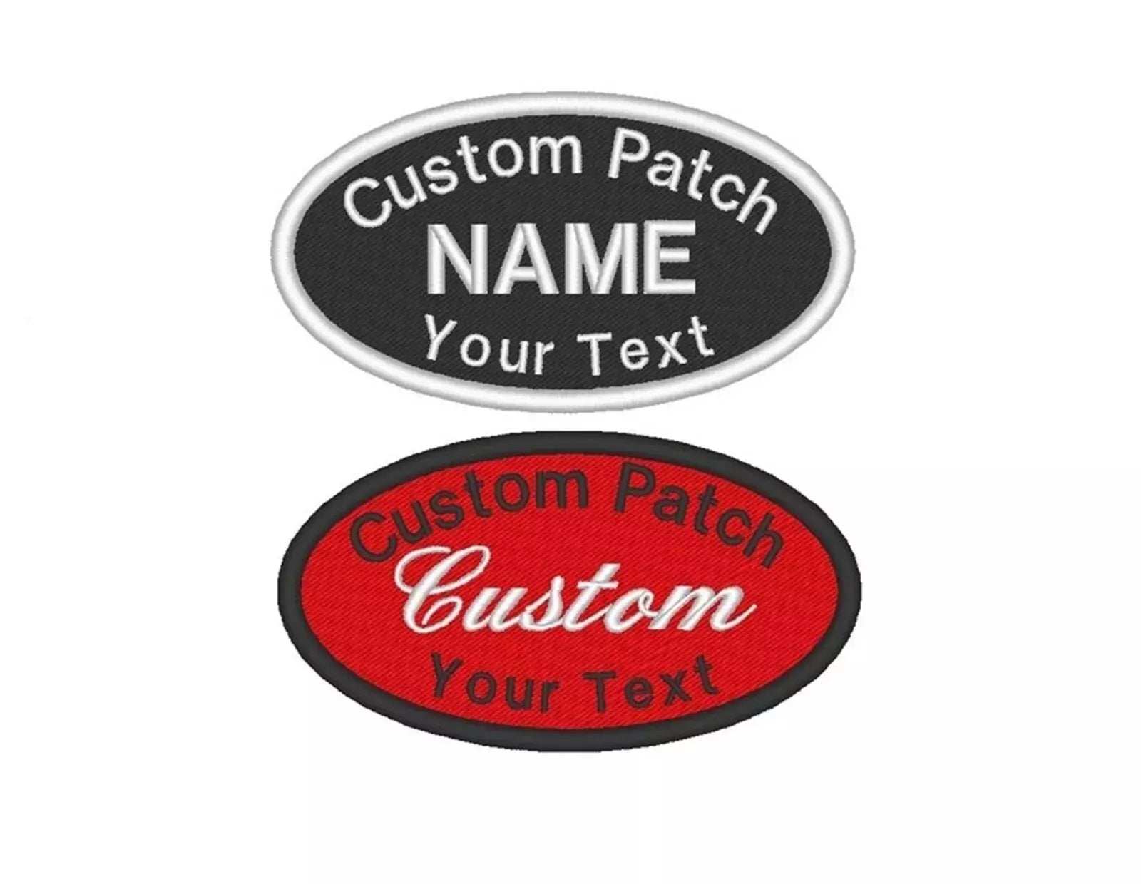Custom Embroidered Name Tag Sew on Patch Motorcycle Biker Oval Badge 4" x 2.25"