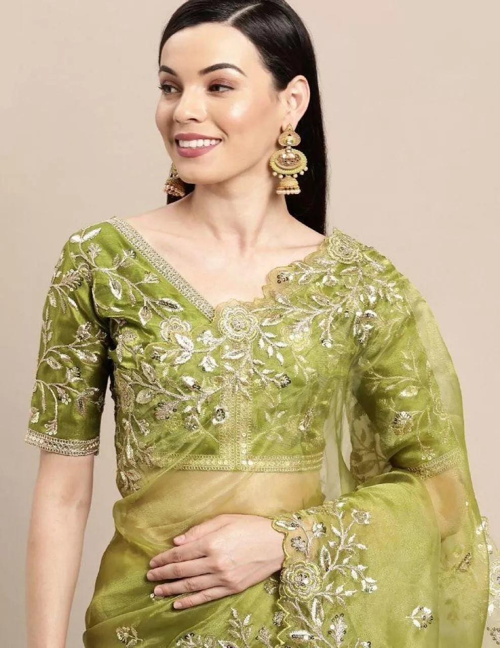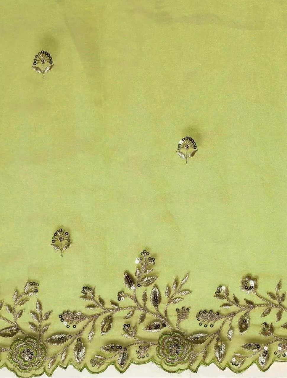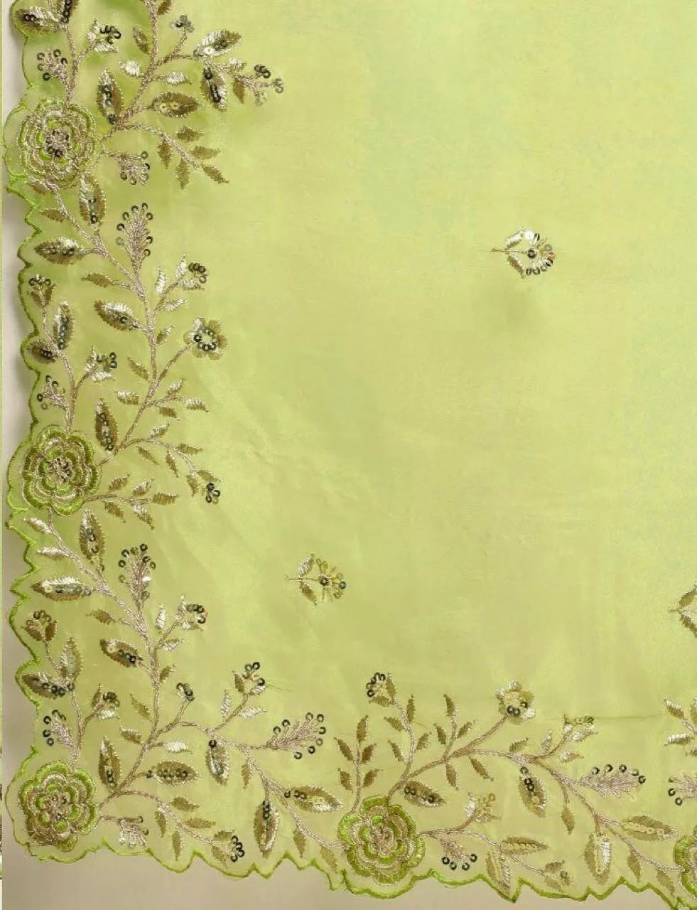 Light Green Soft Organza With All Over Embroidery Work Sari & Blouse