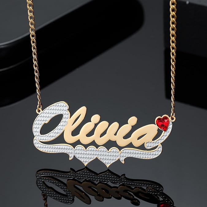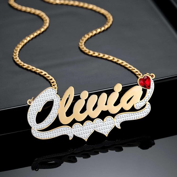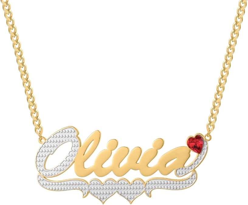 Personalized 18K Gold Plated Name Necklace with Birthstone
