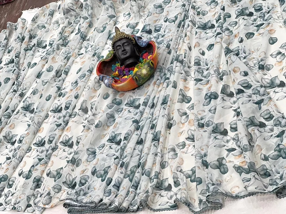 Premium Georgette With Fancy Lace Border Work Read To Wear Sari With Blouse
