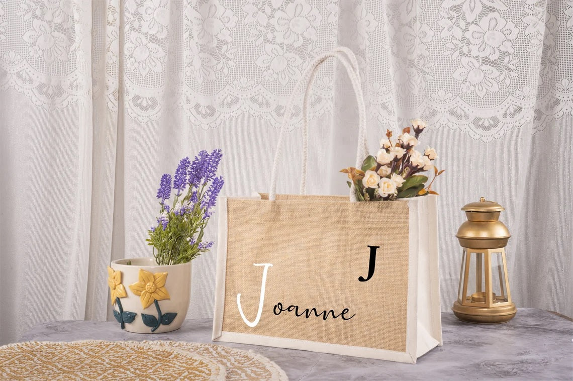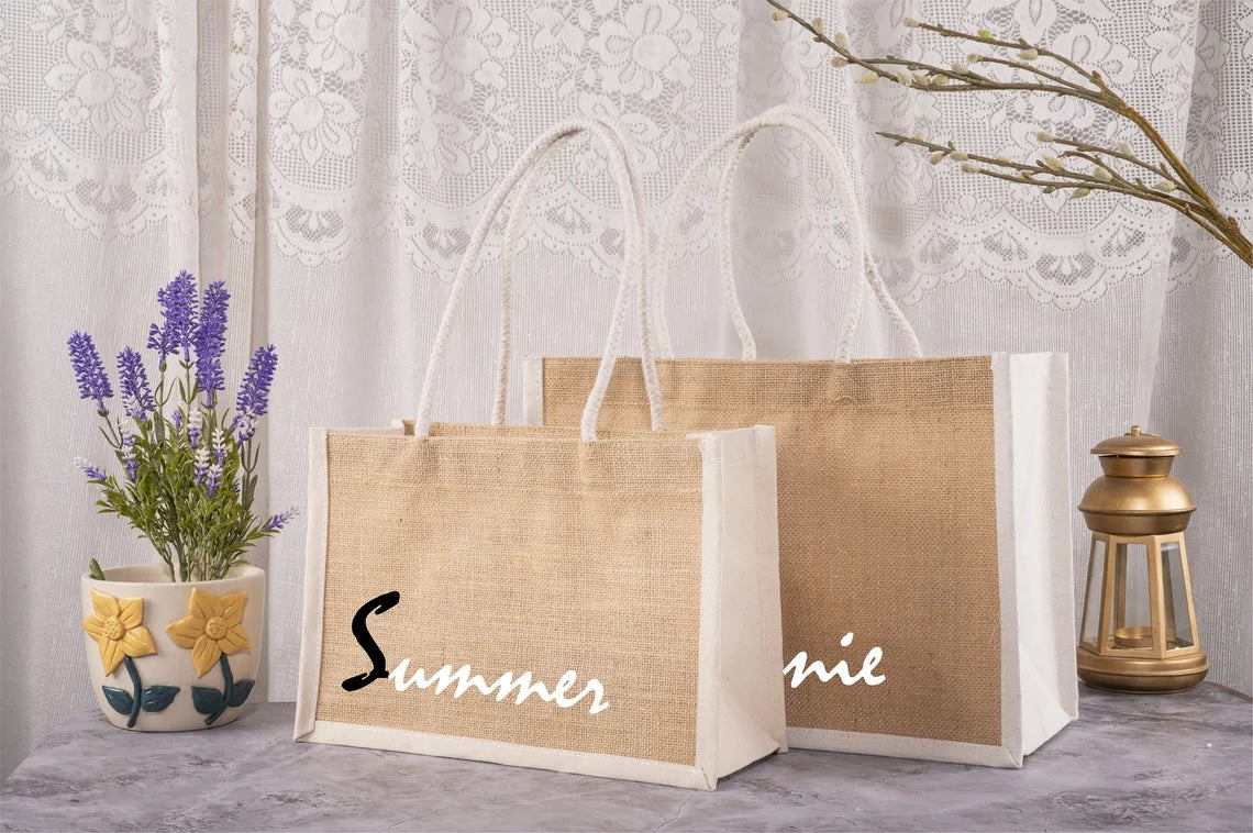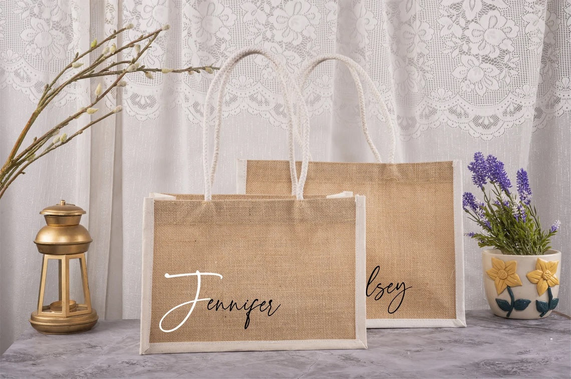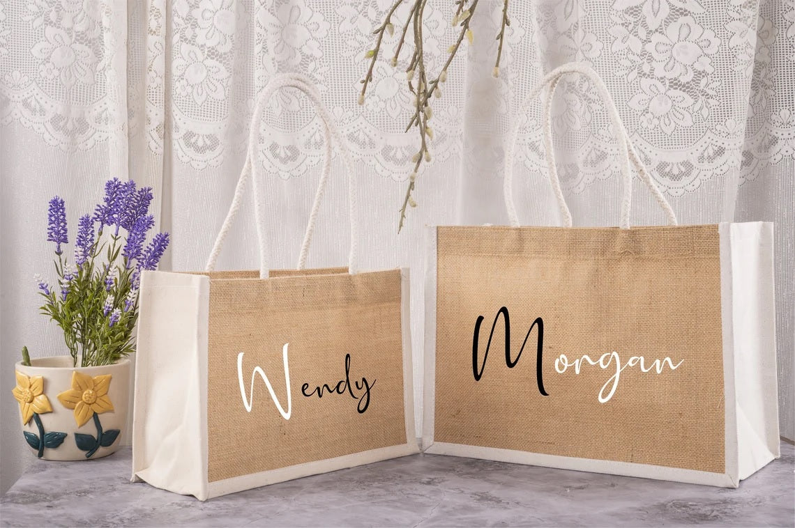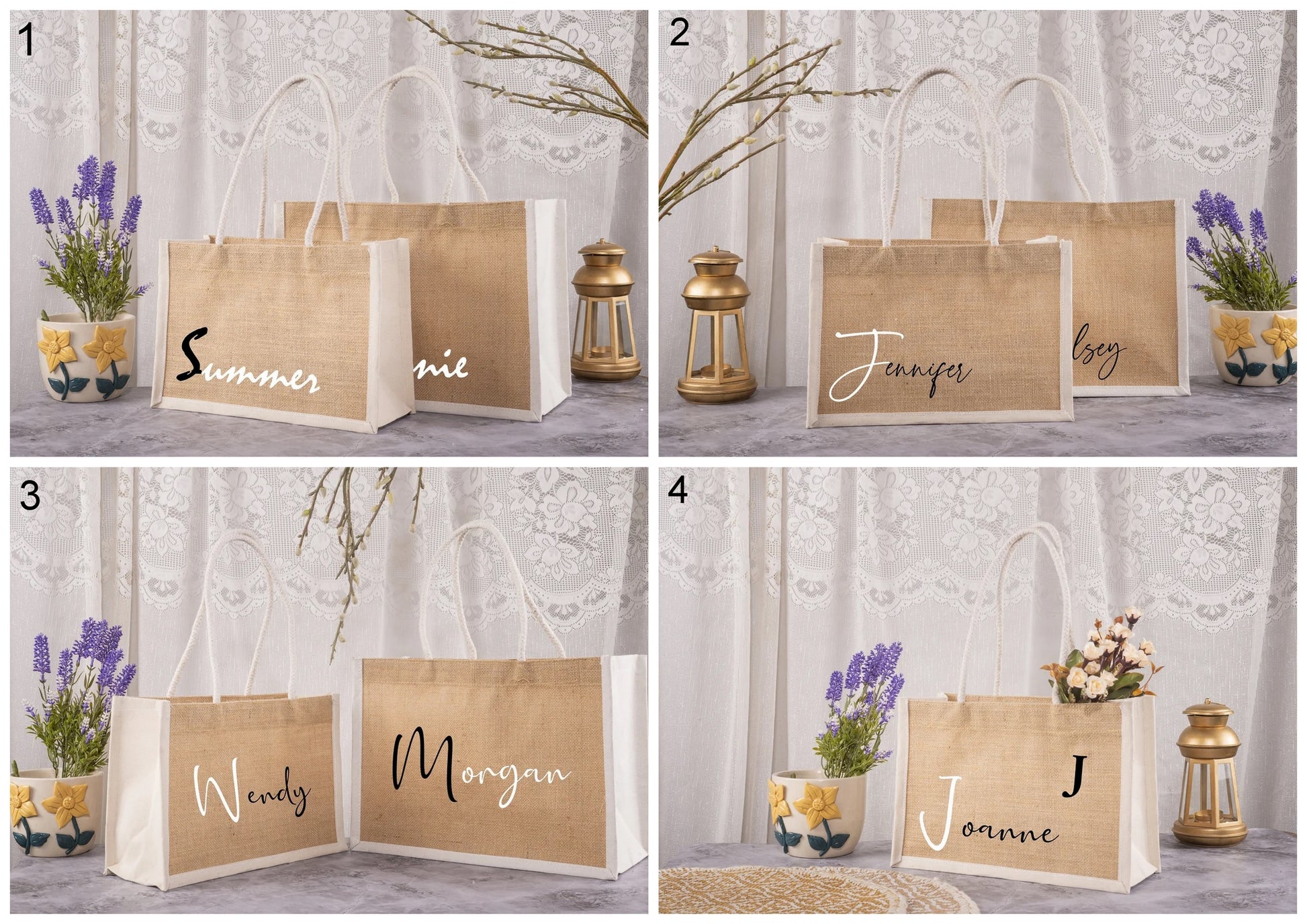 Reusable Shopping Bag, Jute Bag, Bridesmaid Gift Bag, Bridal Party Gift